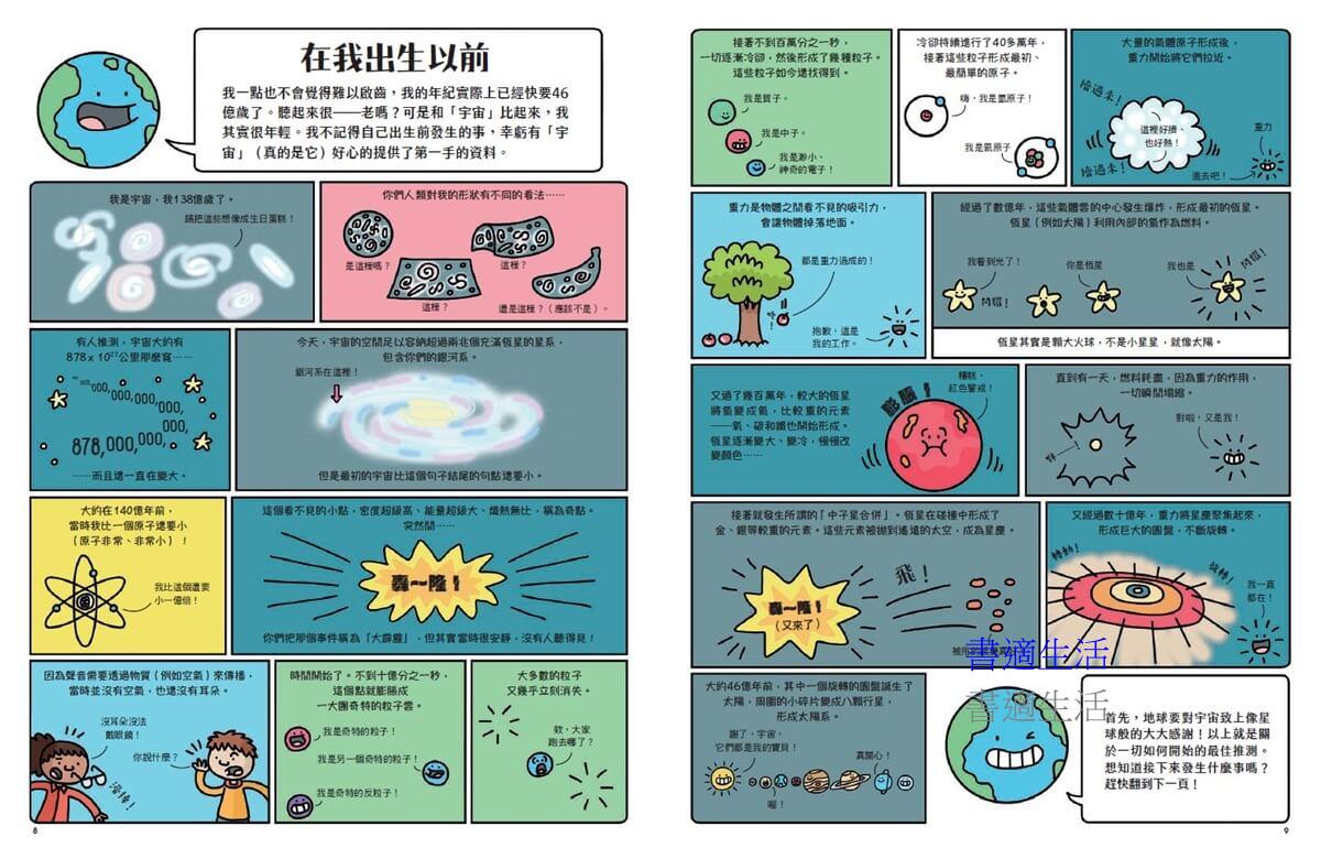 「我是你們的星球—地球。我已經46億歲了!我決定把這46億年來驚天動地的歷史,一次告訴大家。當你知道了這個星球形成的故事、地球上各式各樣的自然環境,以及奧妙、獨特的生物陣容,會發現這個世界真的無可替代,需要大家好好珍惜。」