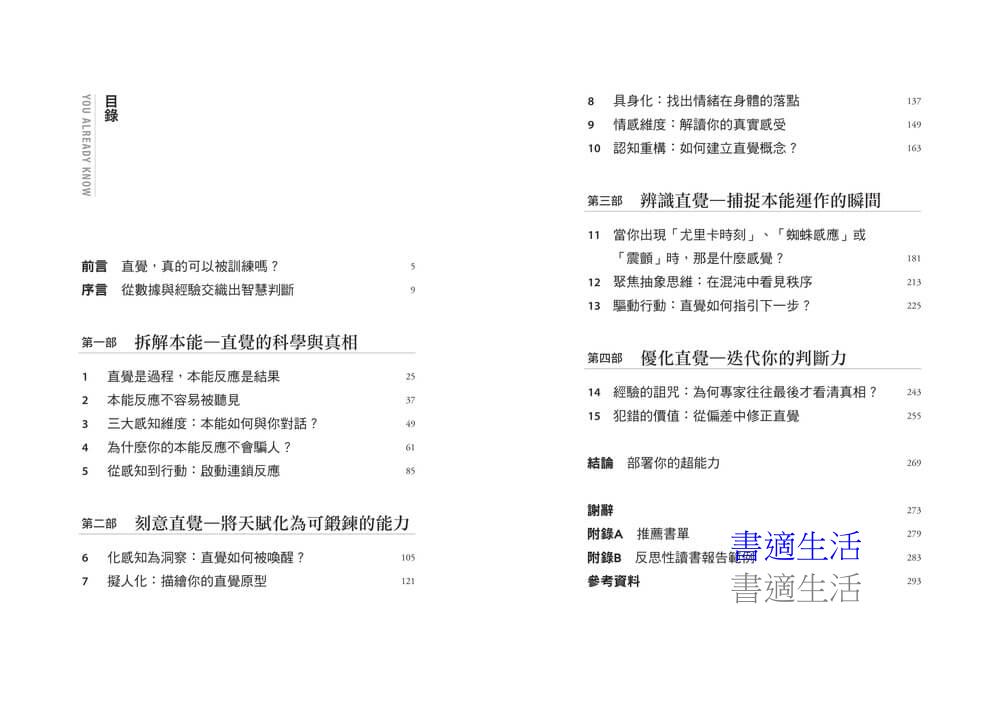 書中更提出一套高度實用的模型,幫助你善用這項最強大、卻也最常被忽略的資源。學會運用直覺,將能做出更好的決定、迅速採取行動,離目標更近一步。
