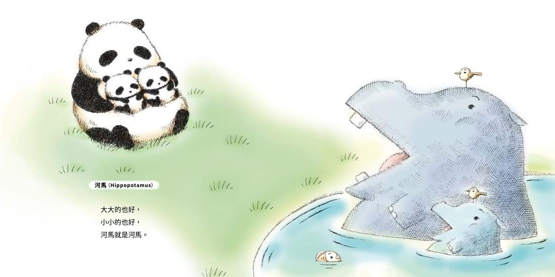 雙胞胎貓熊與羊、河馬、袋鼠、野豬、長頸鹿、鯨頭鸛等朋友們的互動文字富有哲理,卻也在其中保留原本的生物特性。但主軸卻不是在凸顯反差,而是在「你和我,看似一樣卻不同,看似不同卻相像。」之中發現縱使外表各不相同,但是「生命」都是一樣的!每個人類也都是一個截然不同的個體,但在生活中要能看見彼此的差異、展現良善,接納與尊重彼此的不同。