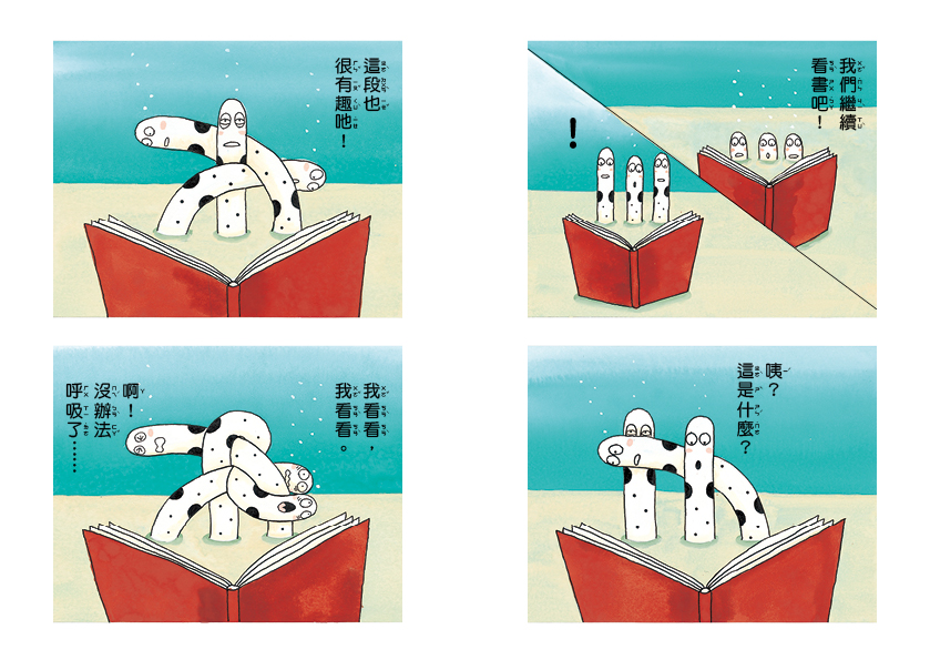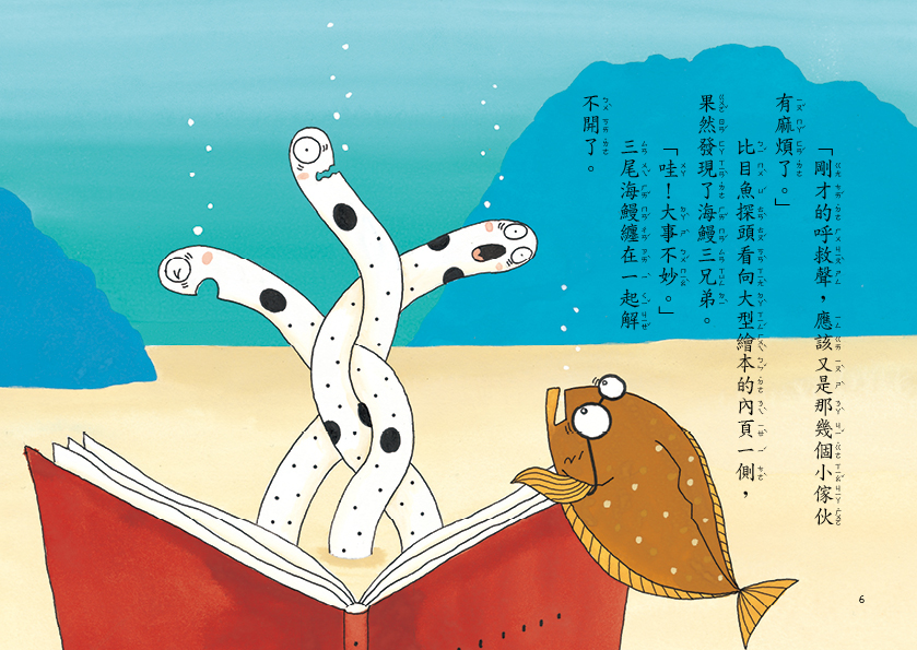 海鰻三兄弟總是看書看到身體打結,要靠小烏賊來幫忙;