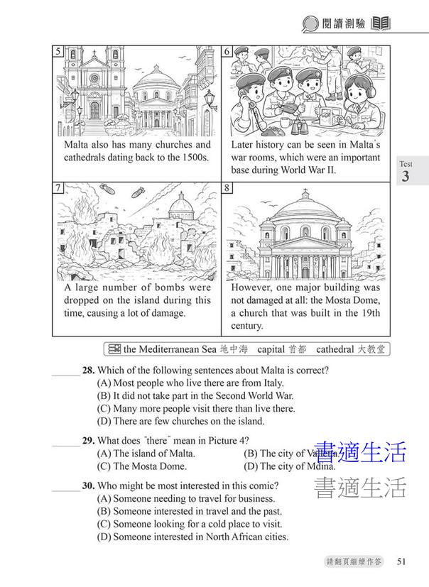 10回試題完全模擬國中會考命題方向,有效訓練閱讀及聽力、培養考試手感。