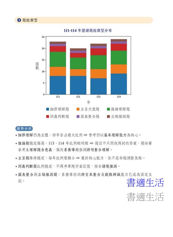 •理由二:數據導向備考! 拒絕盲目刷題,本書深度歸納歷年會考試題,透過大數據精確 鎖定高頻主題、命題趨勢與關鍵文法,讓備考不再盲目,直接聚焦高分重點。