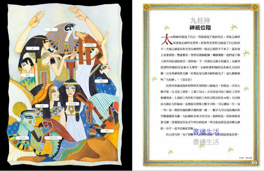 ● 清晰而復古的敘事方式,搭配筆觸細膩、色彩豐沛的精美插畫,襯托出每一位埃及神祇的獨特性格
