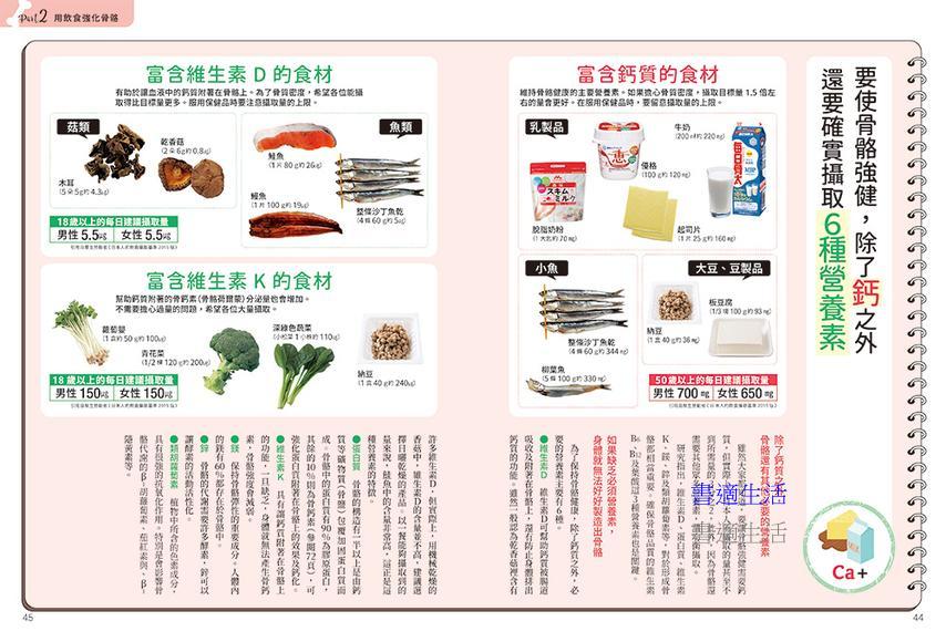 從小到大我們都知道,要補鈣需要多喝牛奶,但除了牛奶之外,還有許多食物都可以幫助骨骼,如:需要鈣則吃乳製品、小魚、豆製品;若需要維生素D,則吃菇類、魚類;若需要維生素K,則吃深綠色蔬菜、納豆、青花菜等……其他蛋白質、鎂、鋅也相當重要。
