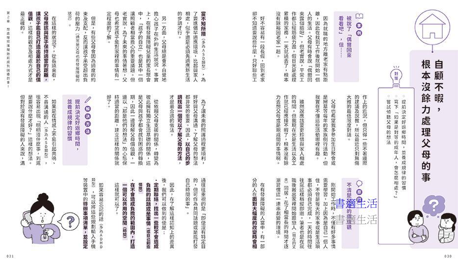 書中包含了多個案例,展示了發展障礙者會遇到的問題與原因,並透過各種解決方法以更好的改善煩惱與困境。