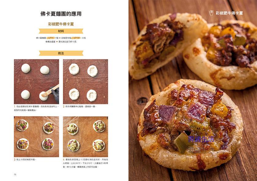 50款麵包配方:佛卡夏麵團、丹麥麵團、貝果麵團、鹼水麵團,每款麵團都有具體的運用,共50款麵包配方。