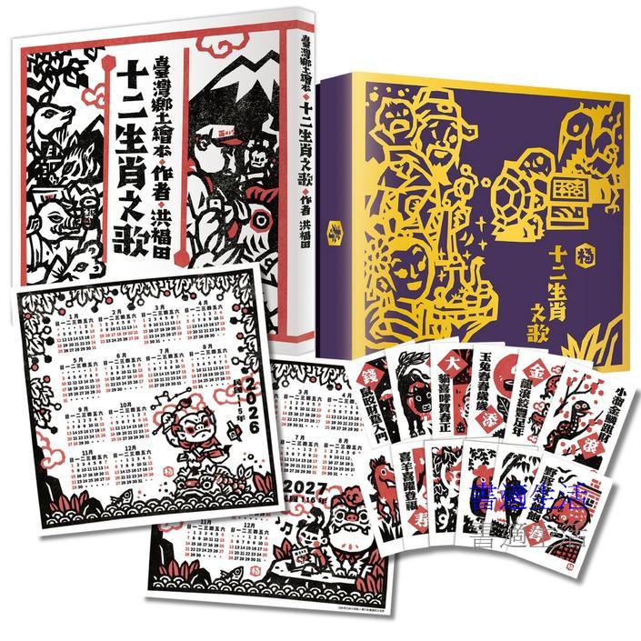 洪福田《十二生肖之歌》臺文繪本+十二生肖全套精美版畫卡片典藏盒裝【新版】