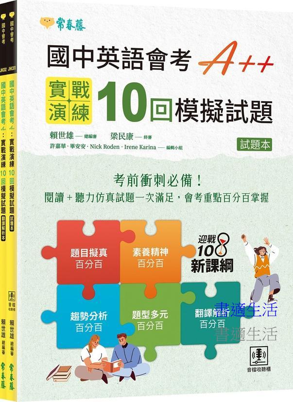 國中英語會考 A++:實戰演練 10 回模擬試題(試題本 + 翻譯解析本 + QR Code線上音檔)